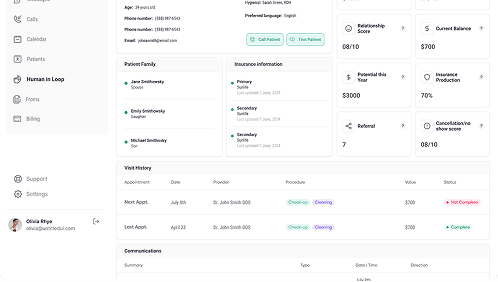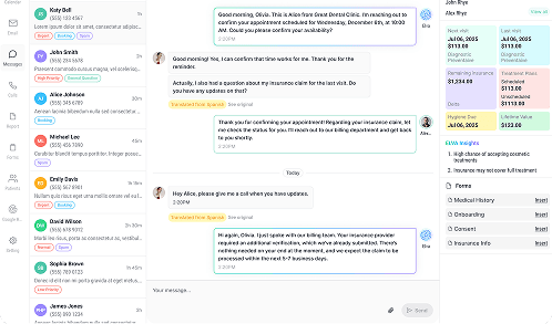 Your practice doesn't need 10 different software tools from 10 different companies, with 10 separate logins, bills, and disconnected data. Elva replaces all that chaos with a single, intelligent platform under one roof, seamlessly connecting your PMS, phones, insurance, patient communications, and more. Because every module shares the same AI Brain trained exclusively on dental workflows, Elva doesn't just store data; it understands it. It spots connections like a missed call leading to an unscheduled treatment plan and makes smart, autonomous decisions that fragmented tools simply can't.