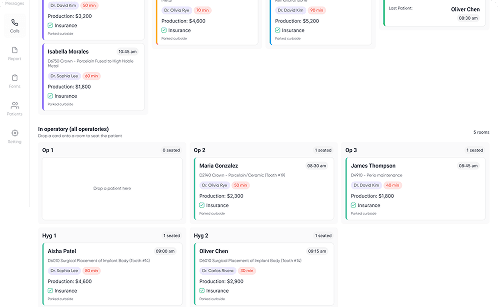 Doctors see their columns; hygienists see theirs. Filter the board so staff see only what they need.