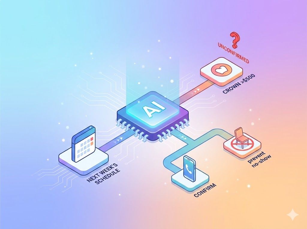 Triggered when production is healthy (>90%) but reliability is low. Elva switches to "Defense Mode" to prevent cancellations and disasters. It audits the schedule for unconfirmed high-value appointments (Crowns, Implants) and missing lab cases. The goal shifts from "filling chairs" to "ensuring they show up." It flags specific patients for priority confirmation calls and alerts you to track delayed lab work before the patient arrives.