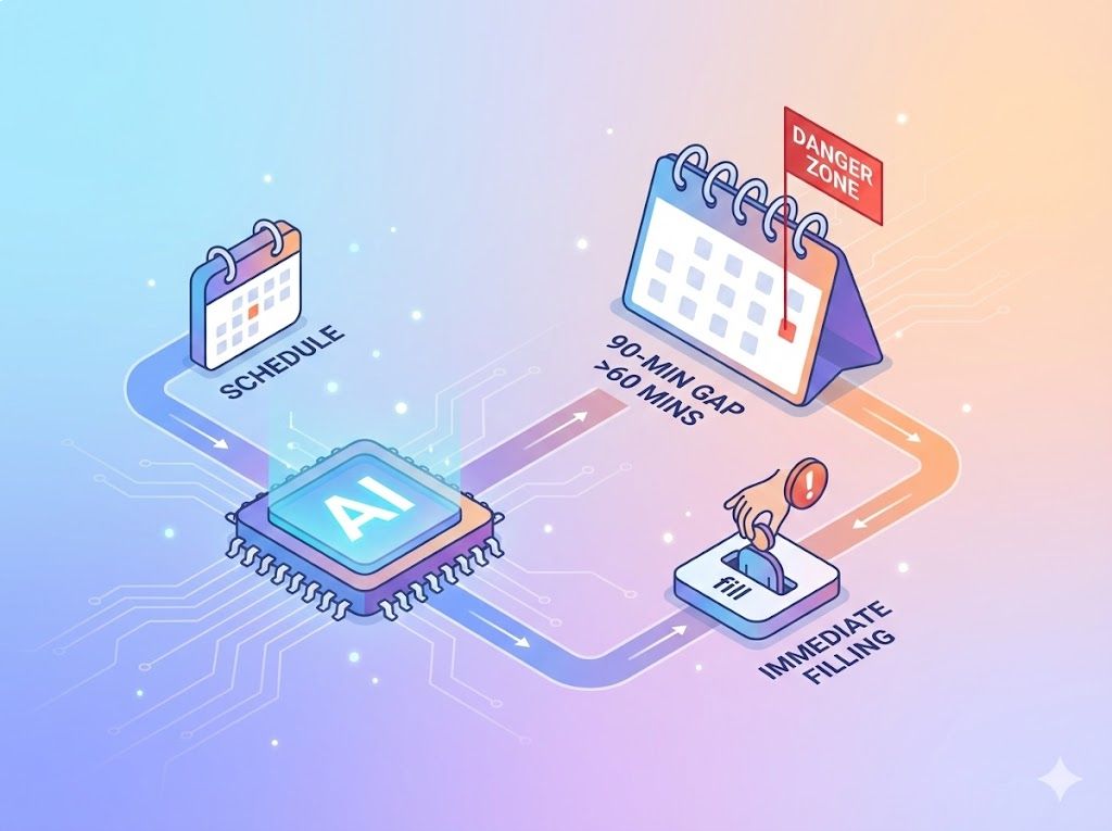 Send targeted SMS offers to specific patient lists (e.g., "ASAP List") to fill the identified "Danger Zones" instantly.