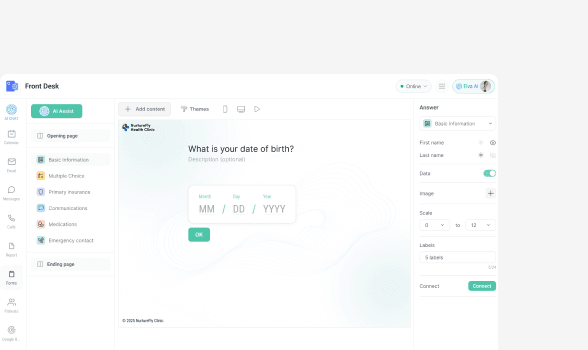 Stop chasing clipboards and deciphering handwriting. Elva automatically sends beautiful, mobile-friendly, Typeform-inspired forms that patients complete at home. It captures the data, verifies the insurance, and even creates the new patient file in your PMS, all without your staff lifting a finger.