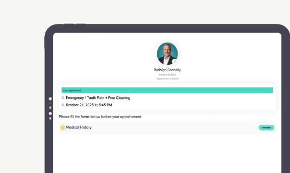 The "clipboard bottleneck" kills efficiency. By moving paperwork to the patient's living room, you reduce check-in time to 30 seconds and create a modern, high-tech first impression.