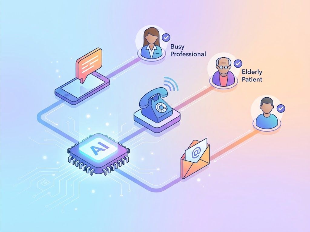 Text messages are great, but they often get ignored. Real appointments happen on the phone. Elva is the only system that actually picks up the phone for you. It acts as a tireless outbound coordinator, calling overdue patients with a friendly, natural voice to personal touch. It navigates the conversation, handles objections, finds a time slot that works, and books it directly into your schedule, all while your front desk staff is busy helping the patients standing in front of them. It's like adding 10 expert schedulers to your team overnight.